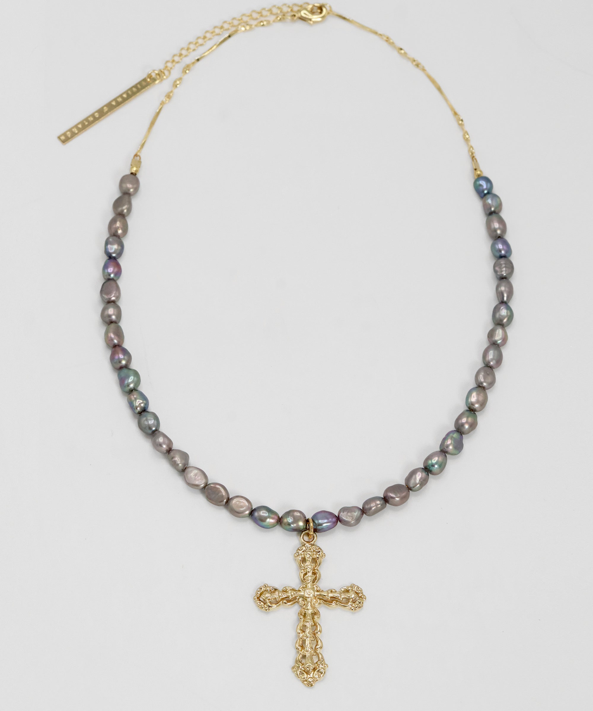 SILVER PEARL CROSS NECKLACE